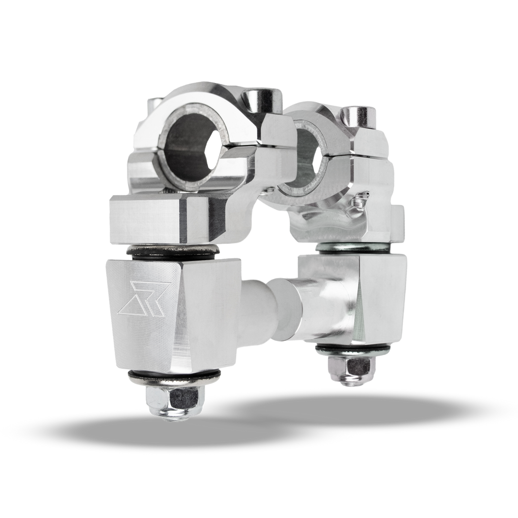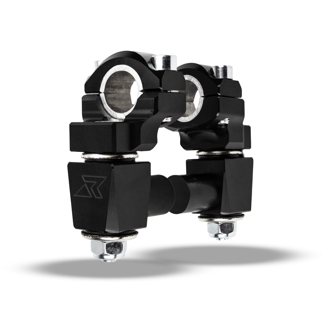 2" Pivoting Anti-Vibe Bar Risers with a 7/8" stem clamp, can accept 7/8" OR 1 1/8" Handlebar- 2 Color Options